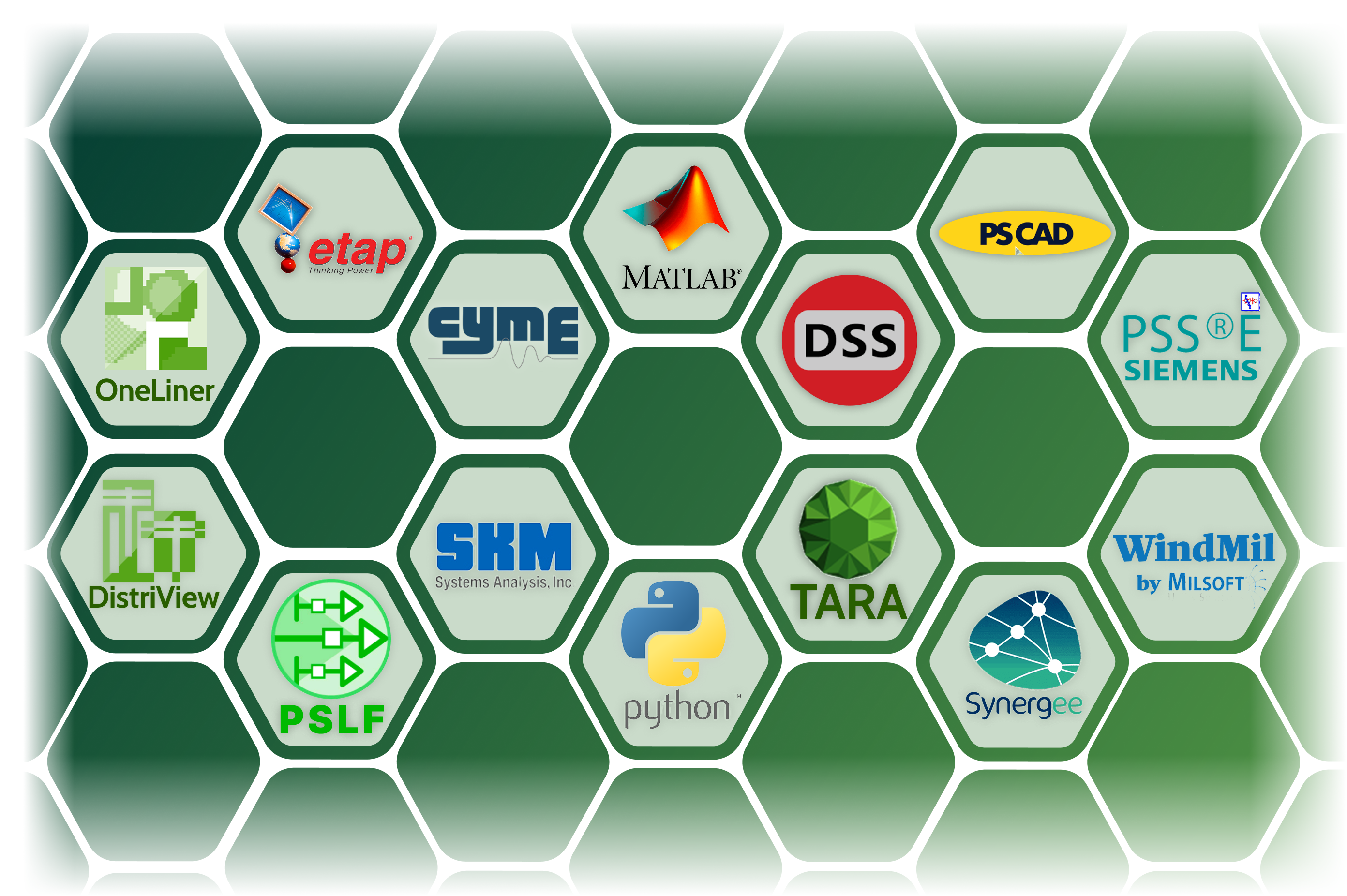 Our expertise spans a wide range of commercial and open-source software, including Siemens PSS®E Power Simulator (PSSE), GE Energy’s Positive Sequence Load Flow (PSLF), Aspen Inc.’s OneLiner™, OpenDSS, CYME, Milsoft WindMil®, GL SynerGEE® Electric, SKM Dapper®, ETAP, Aspen Inc.’s Distriview™, and Manitoba HVDC Research Centre’s PSCAD®.